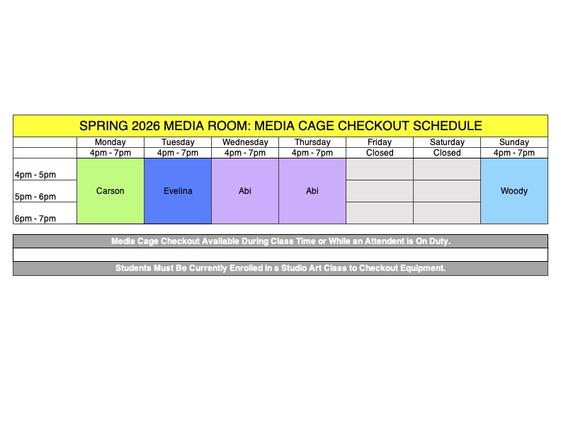 Procedure: Students may checkout equipment during class time or during open Media Room Hours (See Schedule Below).